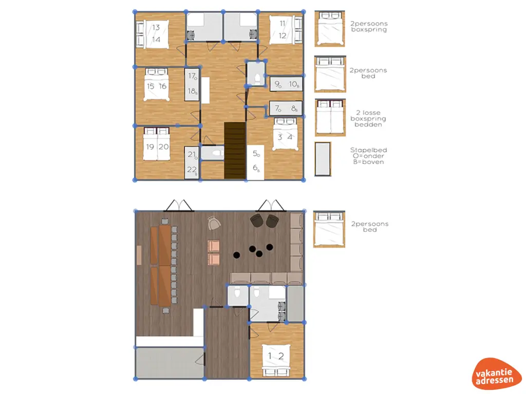 Op onze websites worden vanuit privacy overwegingen geen adresgegevens van vakantieadressen getoond. Op de kaart bij 'Locatie vakantieadres & overzicht Groepsactiviteiten' vind je een nauwkeurige weergave van de locatie van het vakantieadres. Na je boeking ontvang je de adresgegevens van de verhuurder.