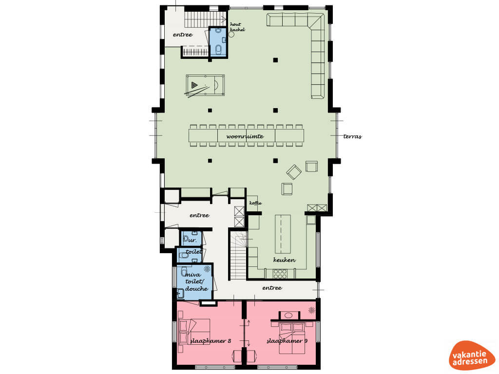 Deze vermelding is gericht op bedrijven & vergadergroepen doordeweeks. Wil je met je familie of vriendengroep dit vakantieadres in het weekend boeken? Bekijk hier onze Beschikbaarheid & Prijzen in de weekenden.