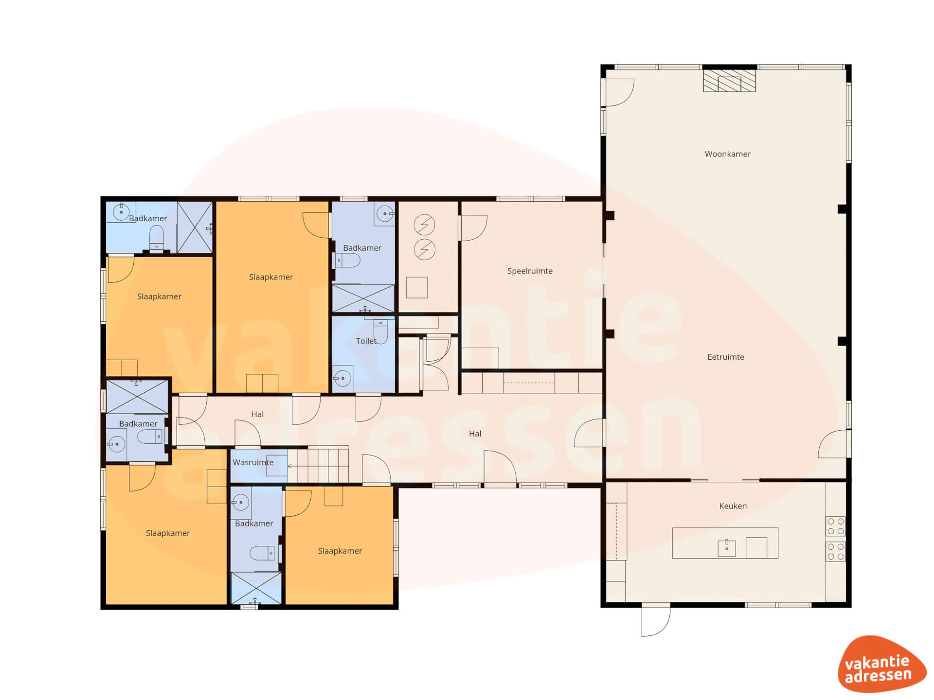 - Alle slaapkamers zijn voorzien van eigen douche, toilet en wastafel