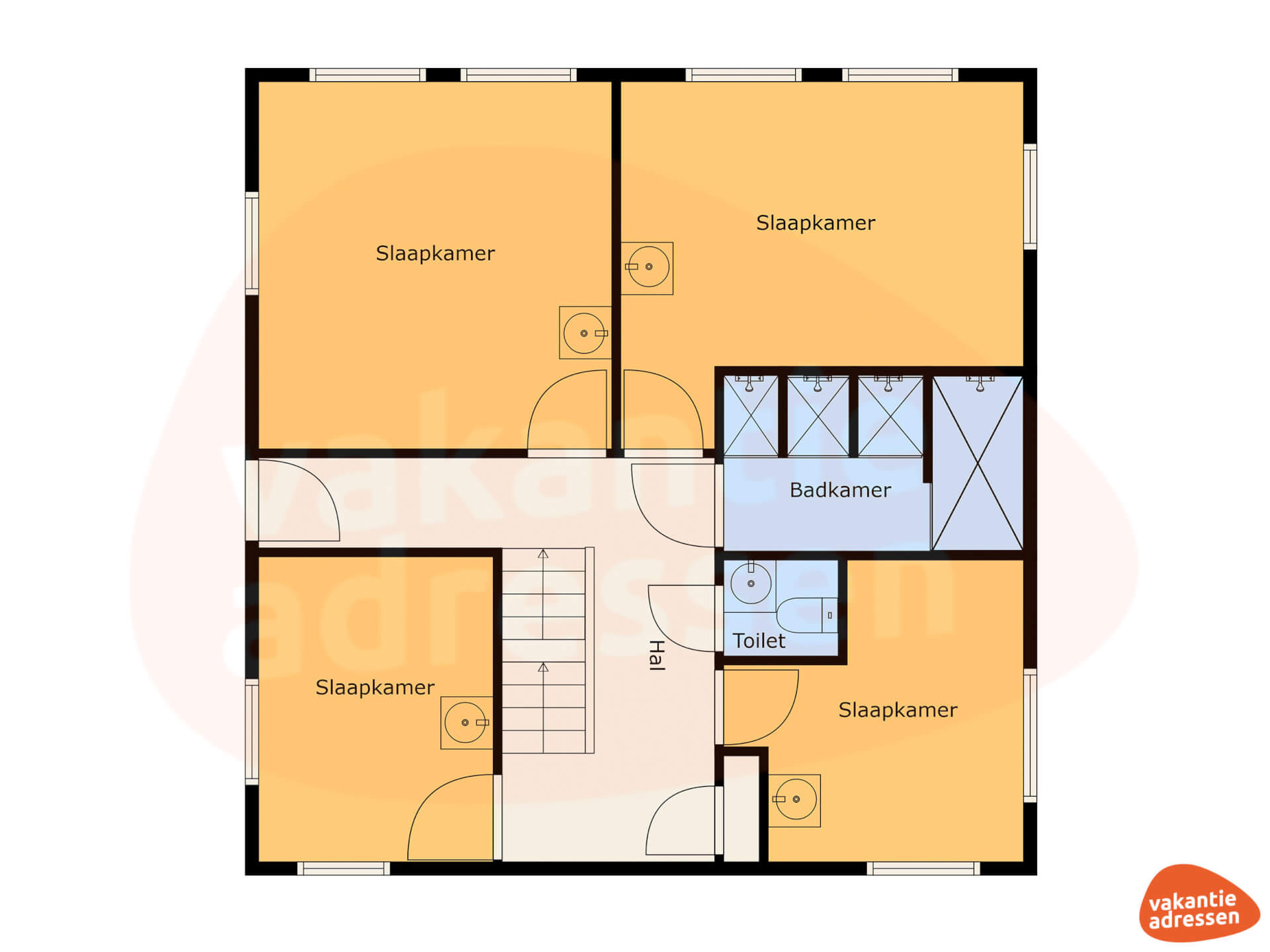 De 9 slaapkamers zijn warm en praktisch ingericht, elk voorzien van een wastafel en comfortabele bedden. Eén kamer bevindt zich op de begane grond, ideaal voor gasten die minder mobiel zijn. De badkamers zijn royaal: 6 douches, 3 toiletten en op de bovenverdieping een heerlijk bad om lekker in te ontspannen na een actieve dag buiten. Hier kan iedereen genieten van rust en privacy, zodat iedereen uitgerust en vrolijk aan de volgende dag kan beginnen. Er zijn standaard dekens aanwezig. Je kan een bedlinnenpakket bijboeken bestaande uit 2 lakens, 1 kussensloop en 1 handdoek.